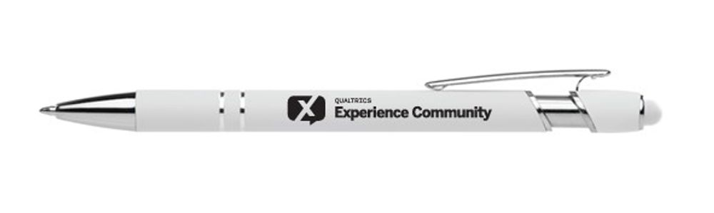 The Ellipse Softy White Barrel with Stylus is a stylish, premium metal pen with medium ballpoint, black ink. Choose from a variety of bright stylus colors that are the perfect punctuation to the white soft touch barrel. This is the ideal canvas for your company's logo imprinted in ColorJet, our full-color, photo-quality direct imprint process that makes it easy to show your brand's true colors. This bright, classic promotional metal pen will be a favorite at conventions, trade shows, corporate events and more!